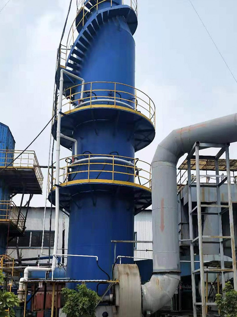 钠-钙双碱法采用火碱吸收SO2  ,石灰还原再生,再生后吸收剂循环使用,无废水排放。窑炉烟气经除尘器除尘后进入脱硫塔,并与脱硫液中的碱性脱硫剂在雾化区内充分接触反应,完成烟气的脱硫吸收。